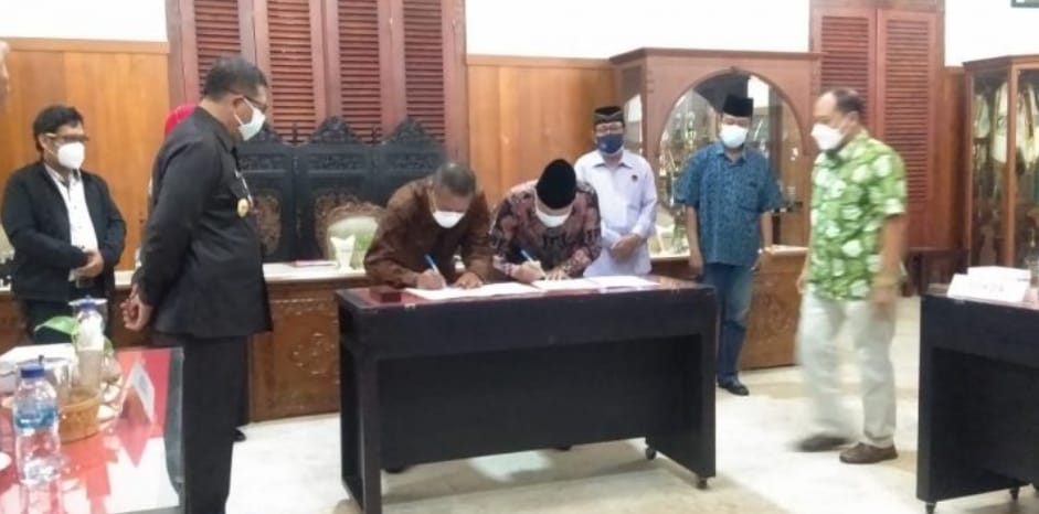 Penandatanganan dilakukan di pendopo Kongas Arum Kusumoning Bongso dengan menghadirkan kedua ketua partai bersama sekretarisnya yakni dari Partai Demokrasi Indonesia Perjuangan (PDIP) Susilowati didampingi Sodik Purnomo dan dari partai Nasional Demokrasi (Nasdem) Ahmad Djadi didampingi Tatang Adi Wiyono.Kamis (05/08/2021