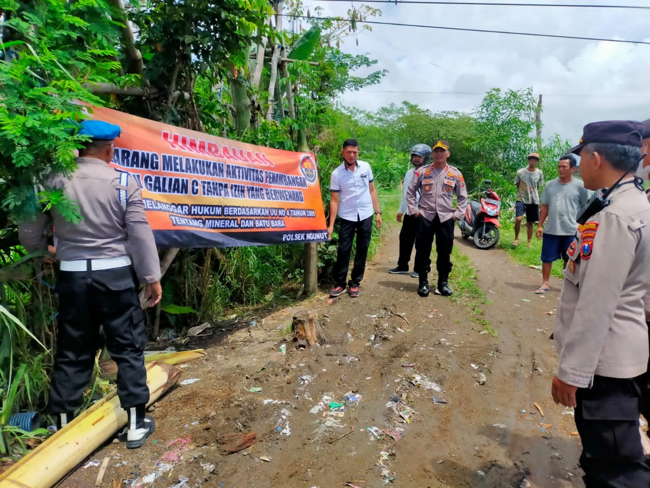 Saat Kapolsek dan anggotanya tiba dilokasi yang diduga tempat penambangan pasir ilegal itu, sudah tidak aktivitas lagi. Sehingga dilakukan pemasangan benner tentang himbauan atau larangan melakukan aktivitas penambangan dilokasi tersebut.