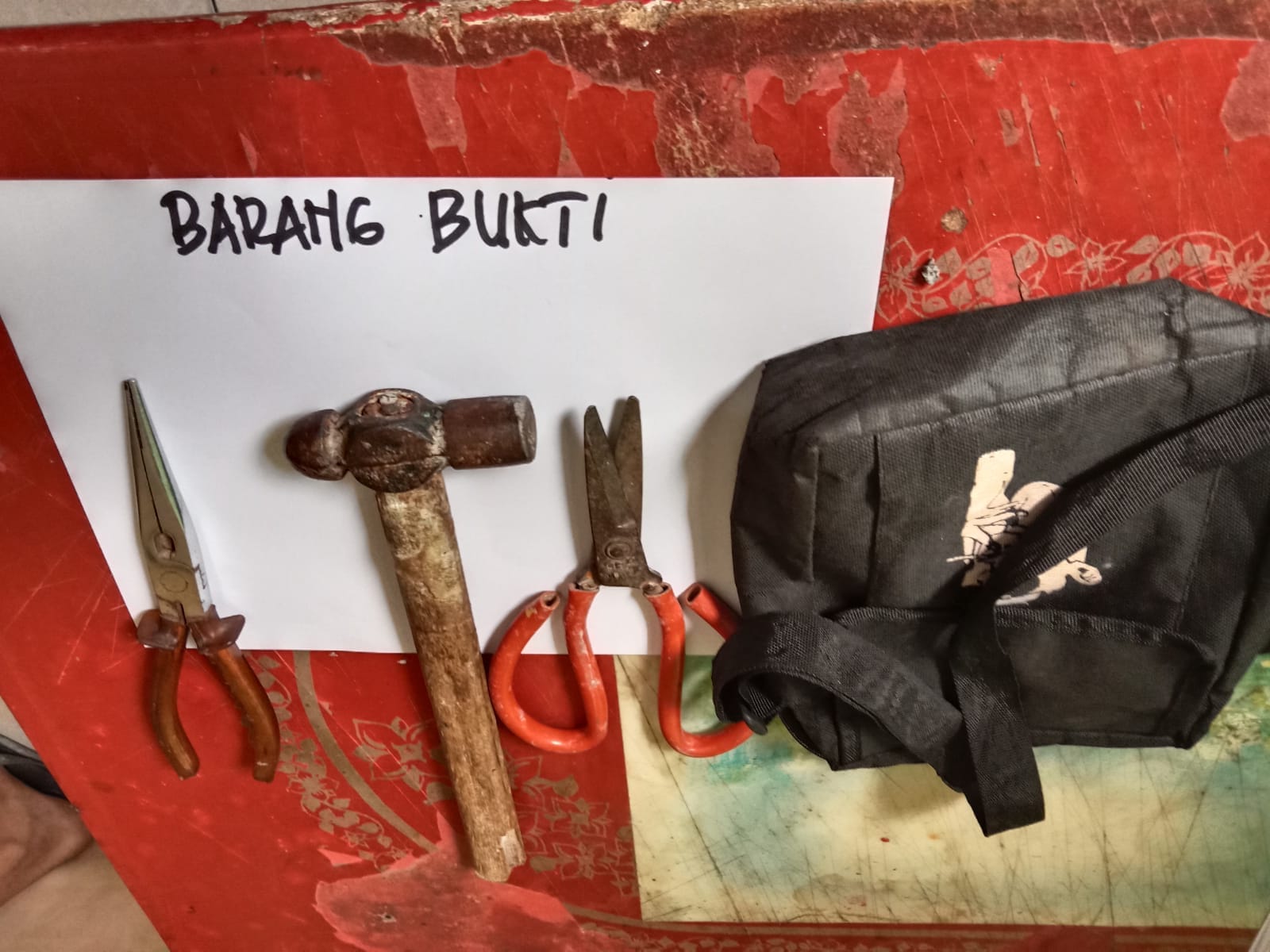“Dari rumah, kedua pelaku sudah mempersiapkan alat – alat untuk melakukan pencuriannya. Diantaranya, sebuah tang, sebuah gunting dan sebuah palu besi,” ungkap Kompol Rudi Purwanto.