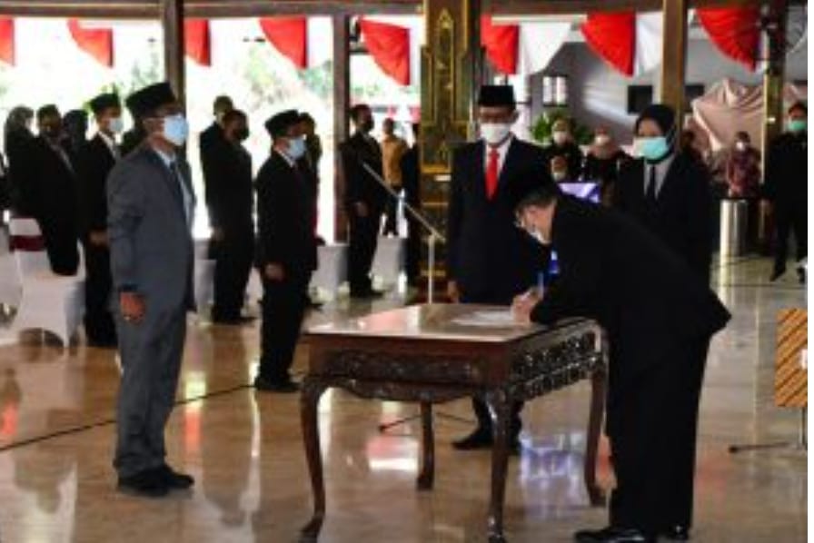 Rorokembang. id| Tulungagung – Pemerintah Kabupaten Tulungagung, Menyelenggarakan Pelantikan dan Pengambilan Sumpah dan Janji Jabatan Administrator,Pengawas dan Fungsional Kesehatan yang diberi tugas tambahan sebagai Kepala UPT Puskesmas pada dinas Kesehatan, yang diadakan di Pendopo Kongas Arum Kusumaning Bongso, Selasa (27/7/2021).