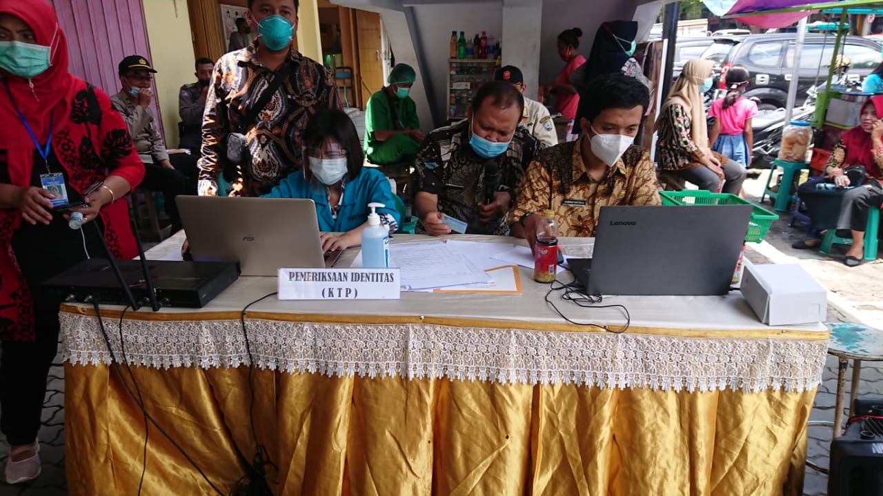 Memulai aktivitas pelayanan pukul 07.30 WIB, vaksinasi terpantau ramai diikuti para pedagang hingga sore hari.