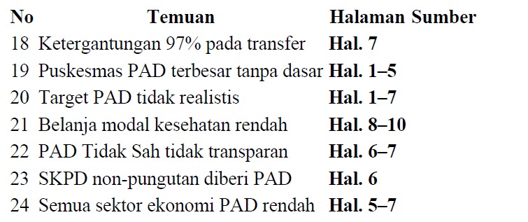 Seluruh temuan berasal dari dokumen resmi pemerintah:
