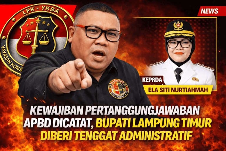 Lampung, 25 Desember 2025 | rorokembang.com — Ketua Umum LPK-YKBA, Eko Puguh Prasetijo, secara resmi besuk 26 Desember 2026 ,rencananya akan menyampaikan Pemberitahuan Kewajiban Pertanggungjawaban Jabatan Kepala Daerah atas APBD Kabupaten Lampung Timur Tahun Anggaran 2025 kepada Bupati Lampung Timur. Penyampaian surat ini dimaksudkan sebagai pencatatan administratif atas kewajiban hukum jabatan, bukan laporan pidana dan bukan tuduhan, guna memastikan pertanggungjawaban pengelolaan keuangan daerah tercatat secara sah.