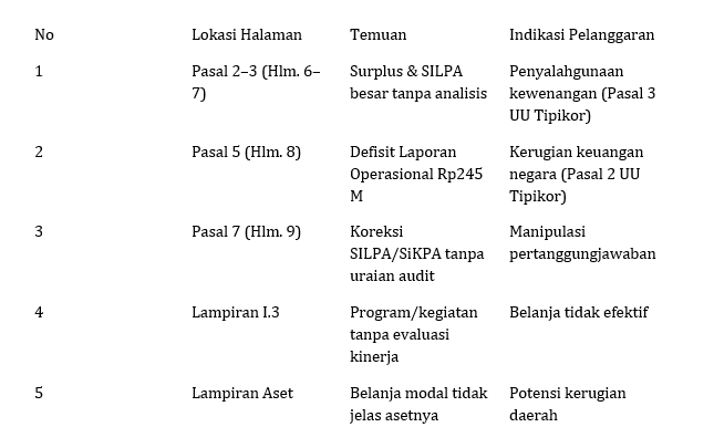 Ketika SILPA besar, defisit operasional muncul, dan lampiran anggaran tidak dianalisis risikonya, maka permintaan pemeriksaan bukan pilihan, melainkan kewajiban hukum.